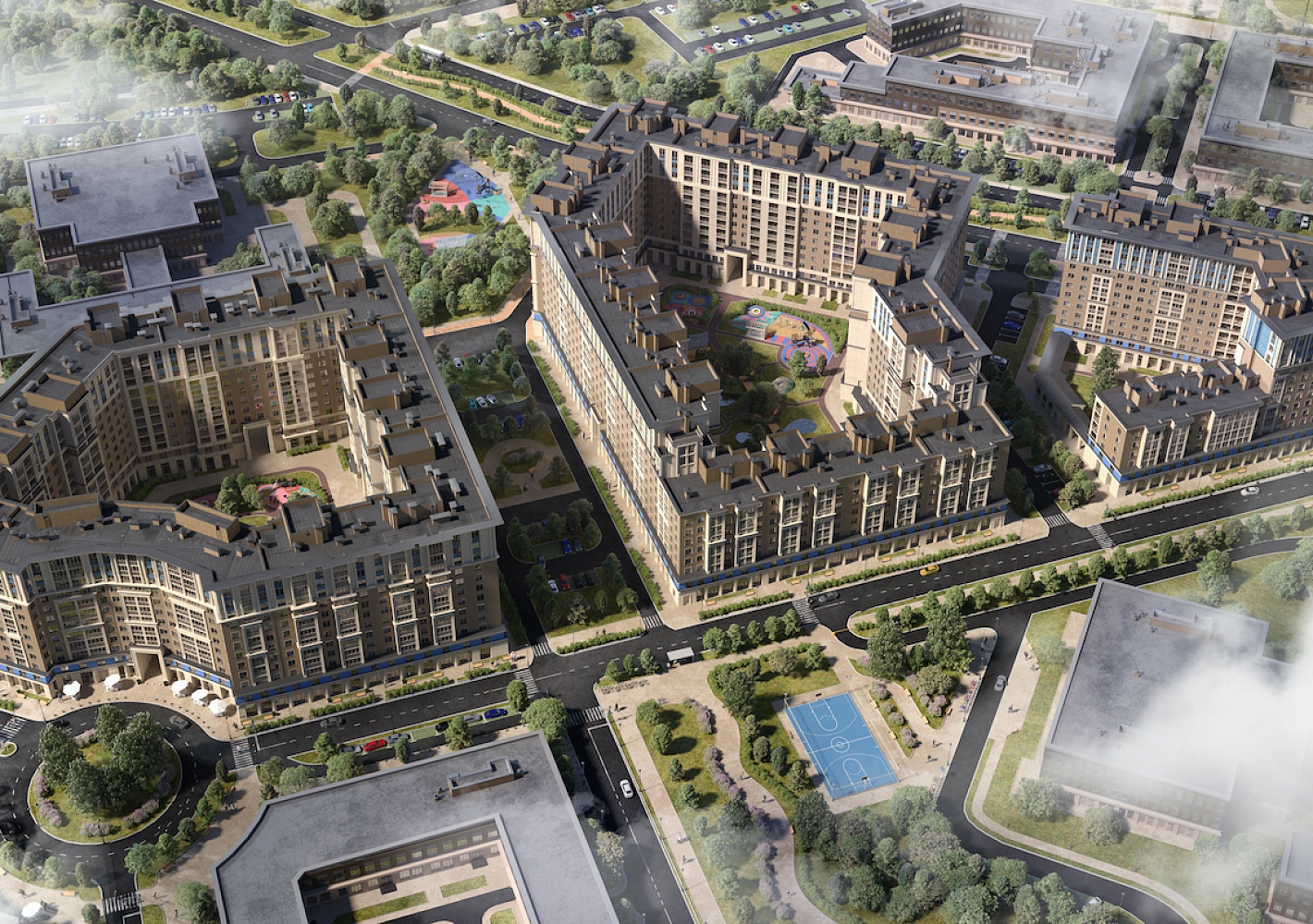 Каждому корпусу – всего их 3 – будет доступен собственный двор с индивидуальным ландшафтным дизайном. Застройщик дает возможность попасть в разную природную среду – лес, луг или поле, где будут высажены разные деревья, кустарники и травы, подходящие той или иной среде.
