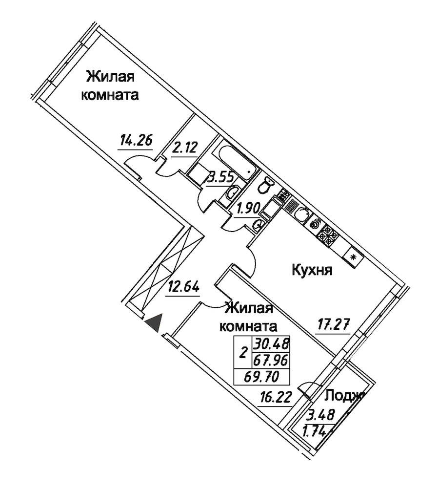 - Площадь69,7 м2