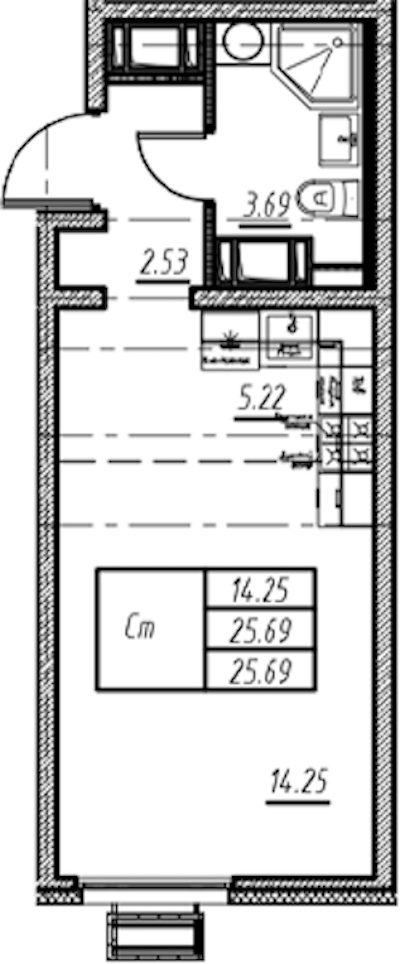 • Площадь25,69 м2