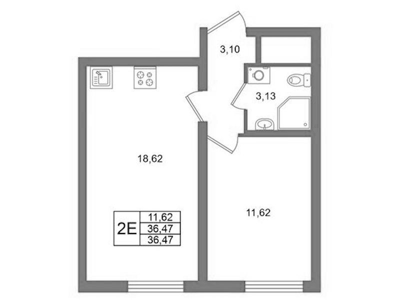 Однокомнатная квартира на 17-ом этаже 36,47 кв.м