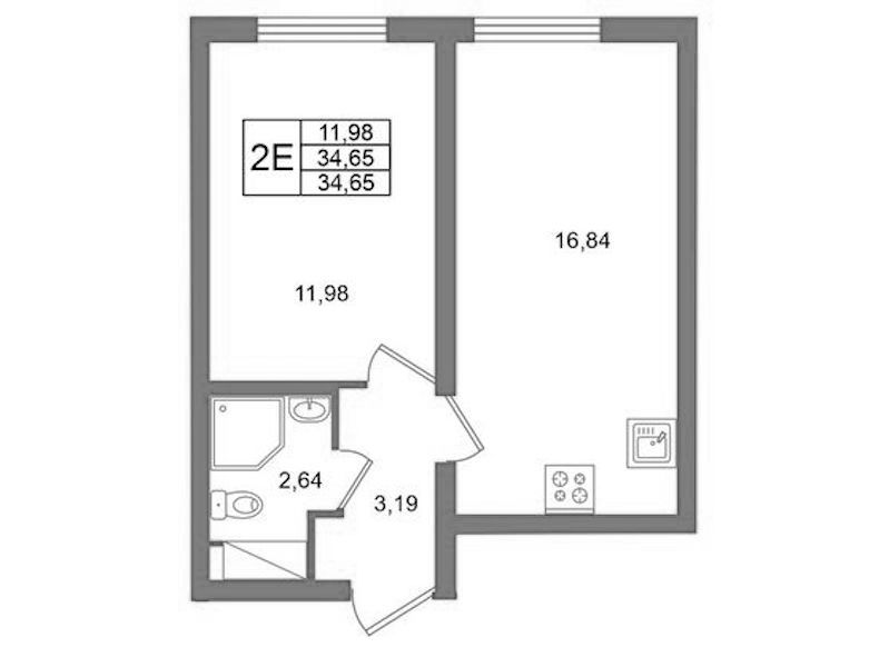 Однокомнатная квартира на 22-ом этаже 34,65 кв.м