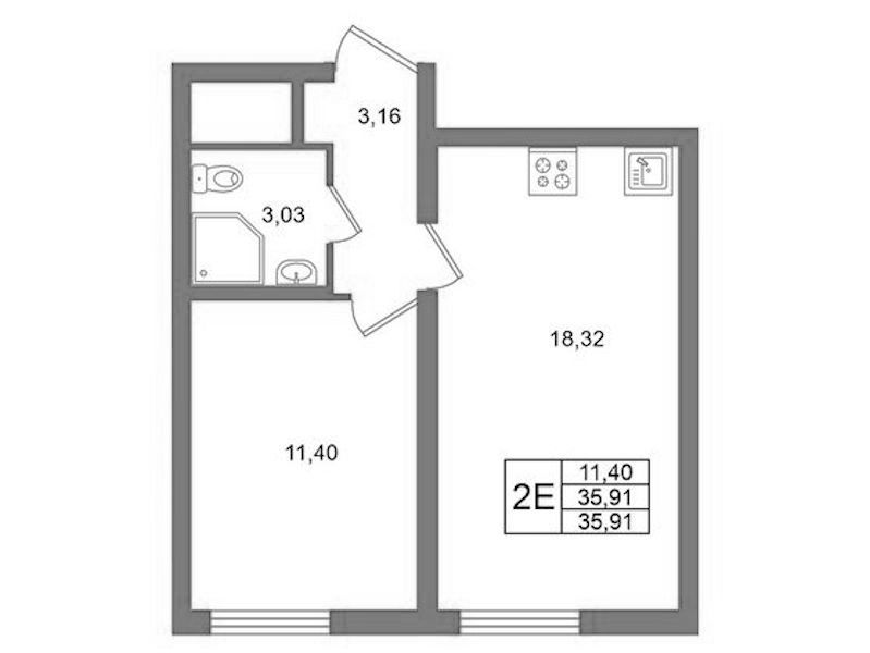 - Площадь35,91 м2