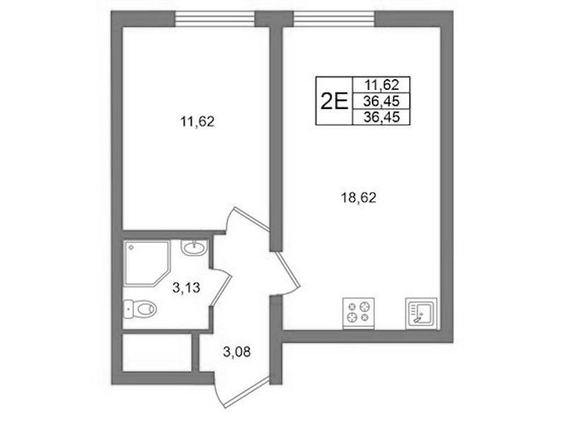Однокомнатная квартира на 11-ом этаже 36,45 кв.м