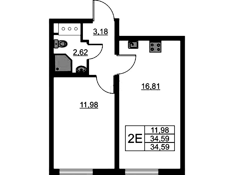 • Площадь34,59 м2