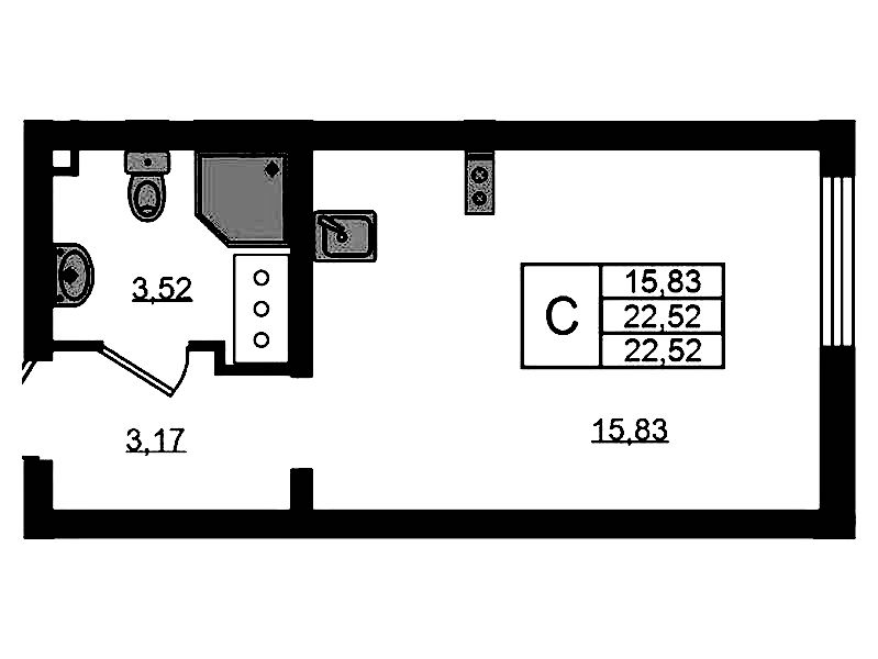 • Площадь22,82 м2