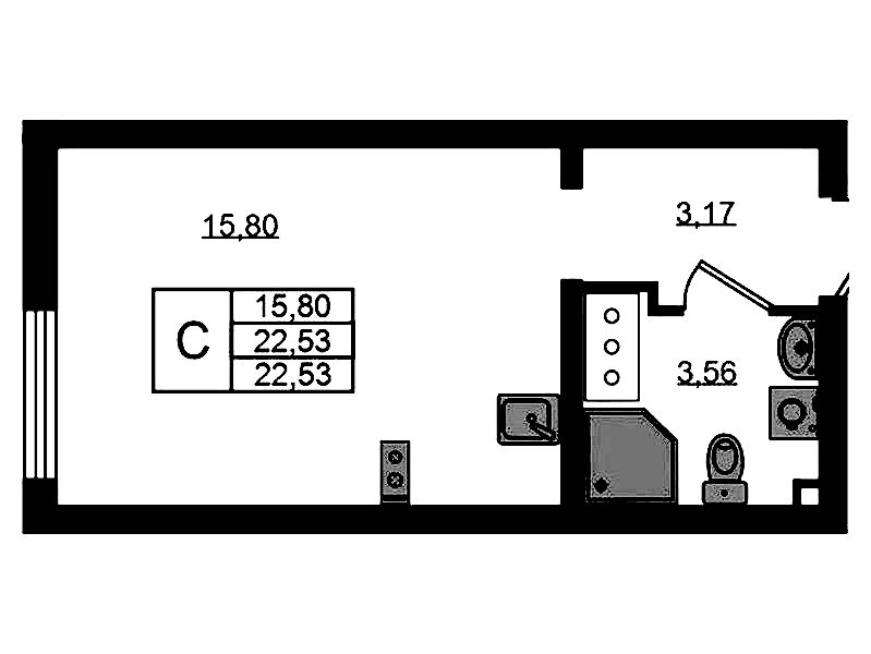 Квартира-студия на 7-ом этаже 22,83 кв.м