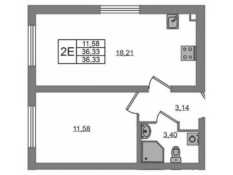 Однокомнатная квартира на 7-ом этаже 36,19 кв.м