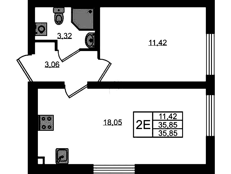 - Площадь35,85 м2