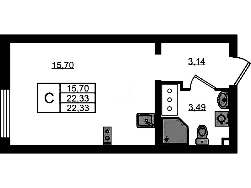 - Площадь22,33 м2