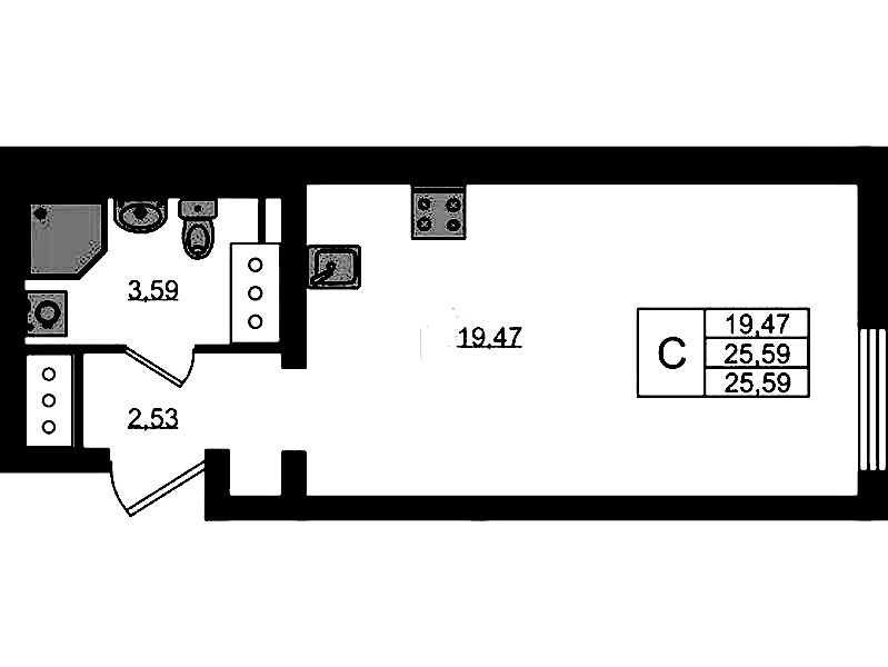 - Площадь25,6 м2