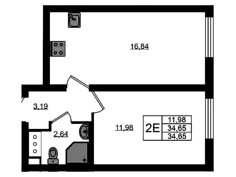 Однокомнатная квартира на 12-ом этаже 34,7 кв.м