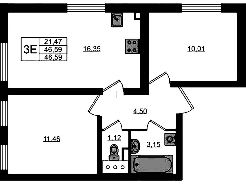 • Площадь46,6 м2