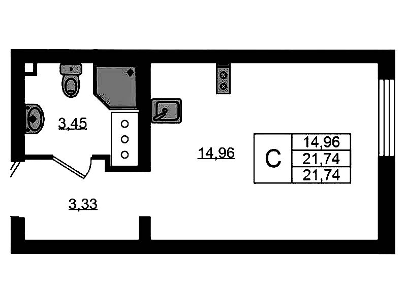 - Площадь21,74 м2