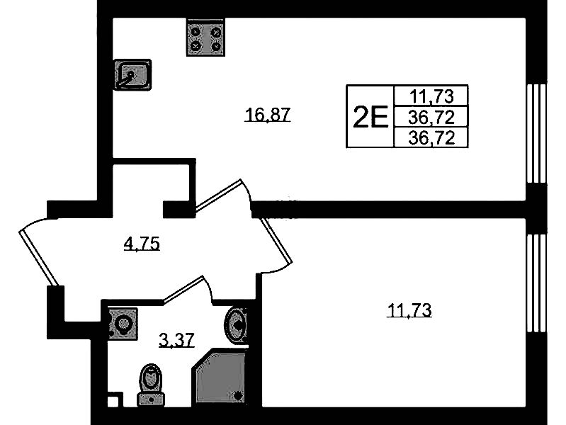 • Площадь36,72 м2