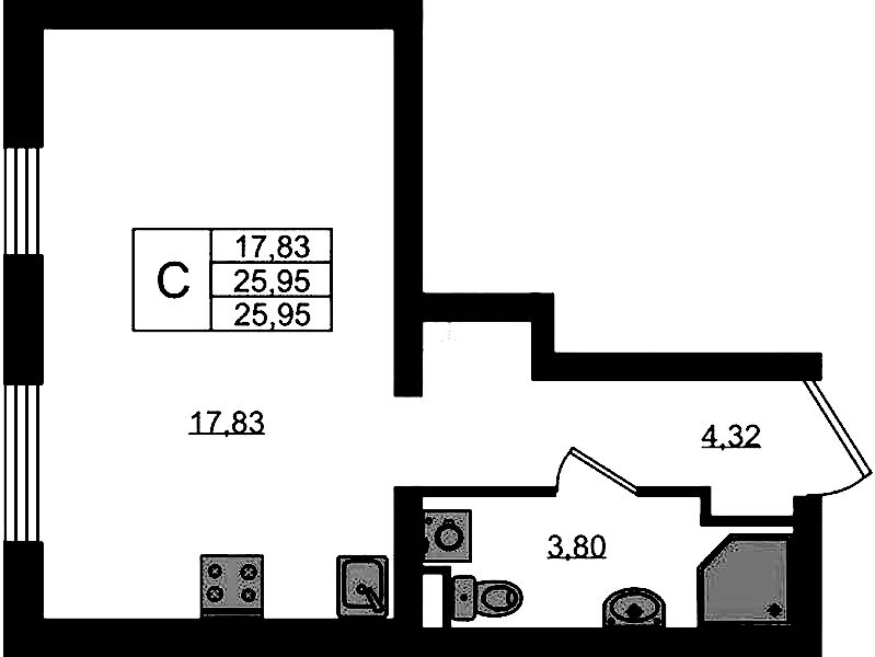 Квартира-студия на 17-ом этаже 25,95 кв.м