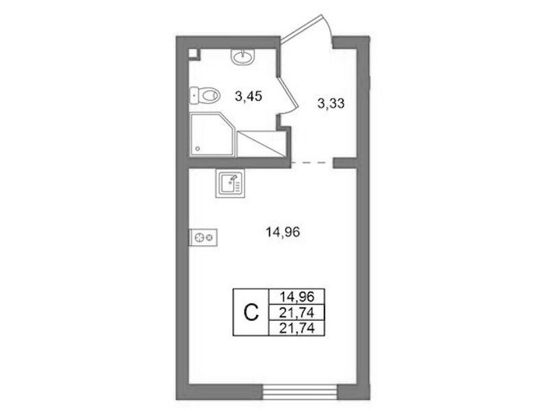 Квартира-студия на 15-ом этаже 21,74 кв.м