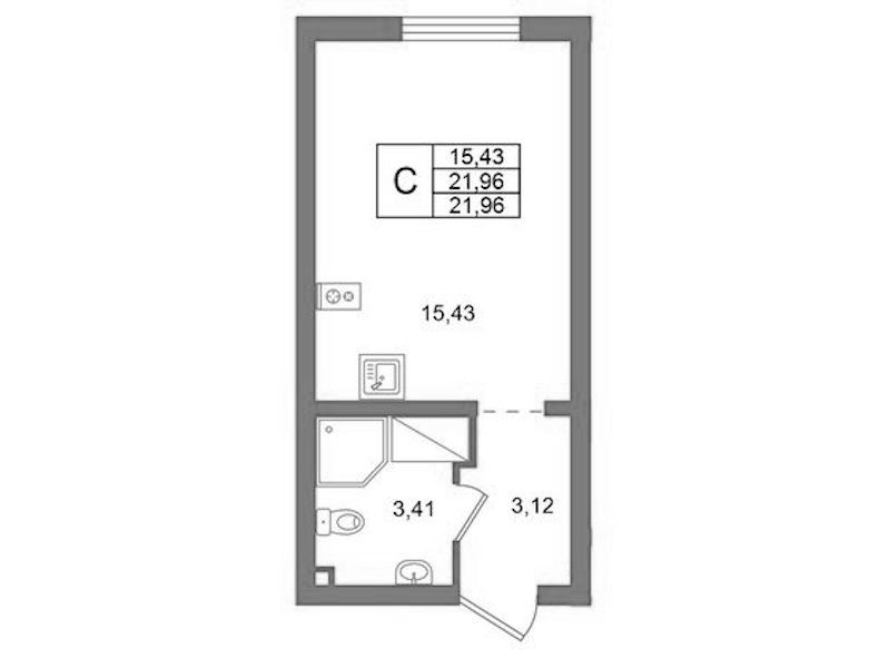 Квартира-студия на 15-ом этаже 21,96 кв.м
