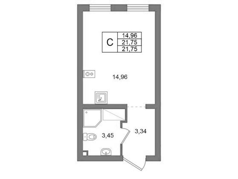 Квартира-студия на 12-ом этаже 21,43 кв.м