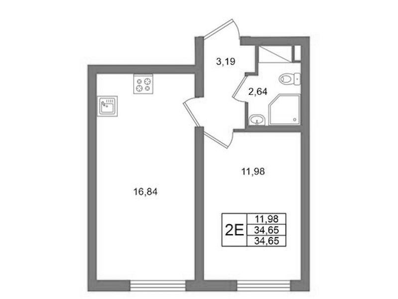 Однокомнатная квартира на 12-ом этаже 34,65 кв.м