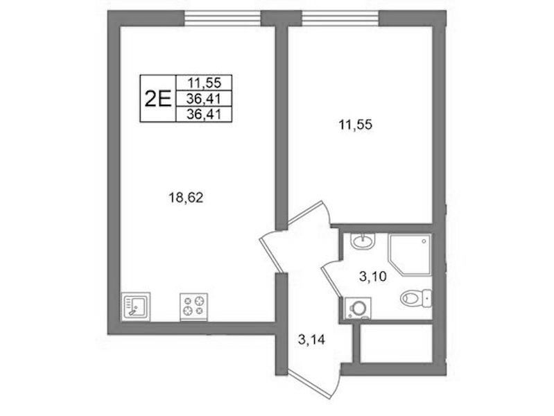 Однокомнатная квартира на 13-ом этаже 36,41 кв.м