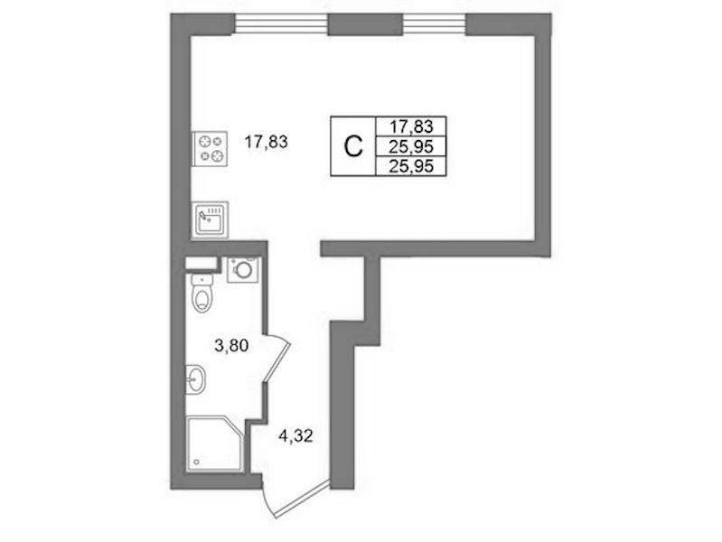 - Площадь25,95 м2
