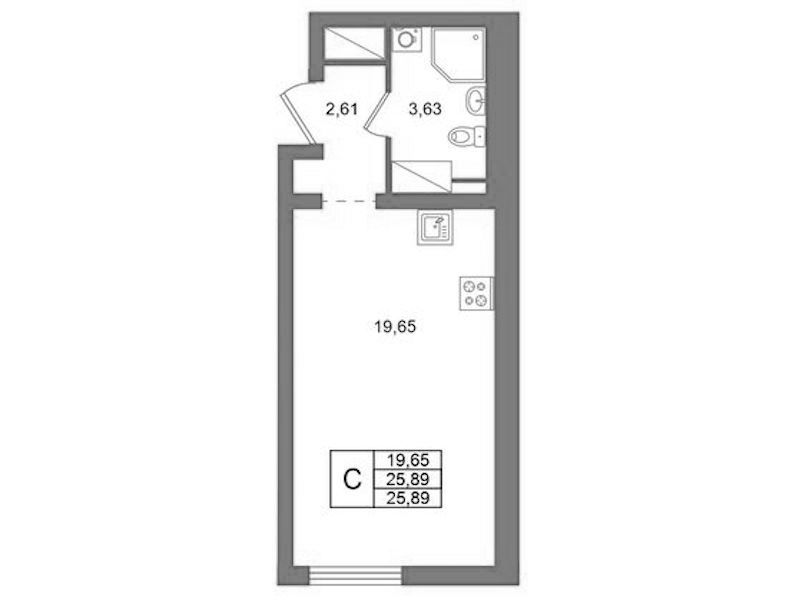 Квартира-студия на 14-ом этаже 25,89 кв.м