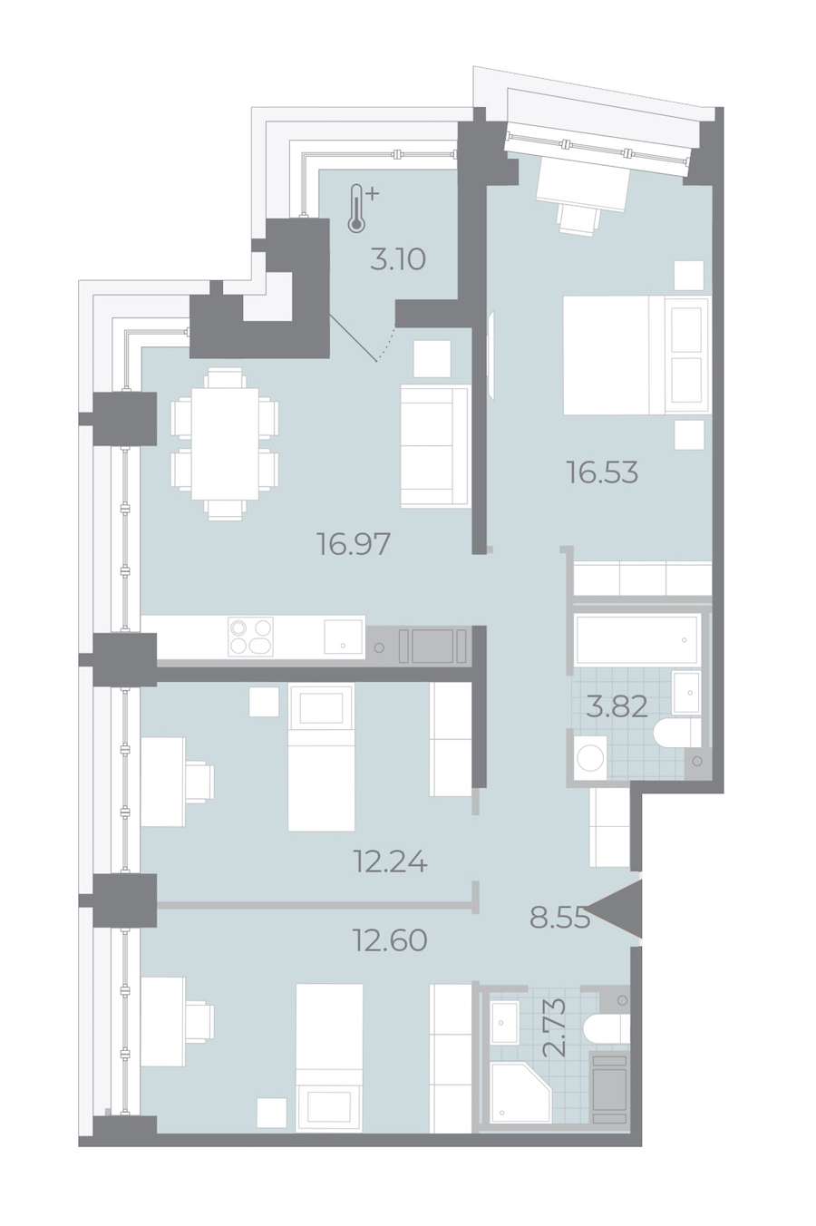 Трёхкомнатная квартира на 17-ом этаже 74,99 кв.м