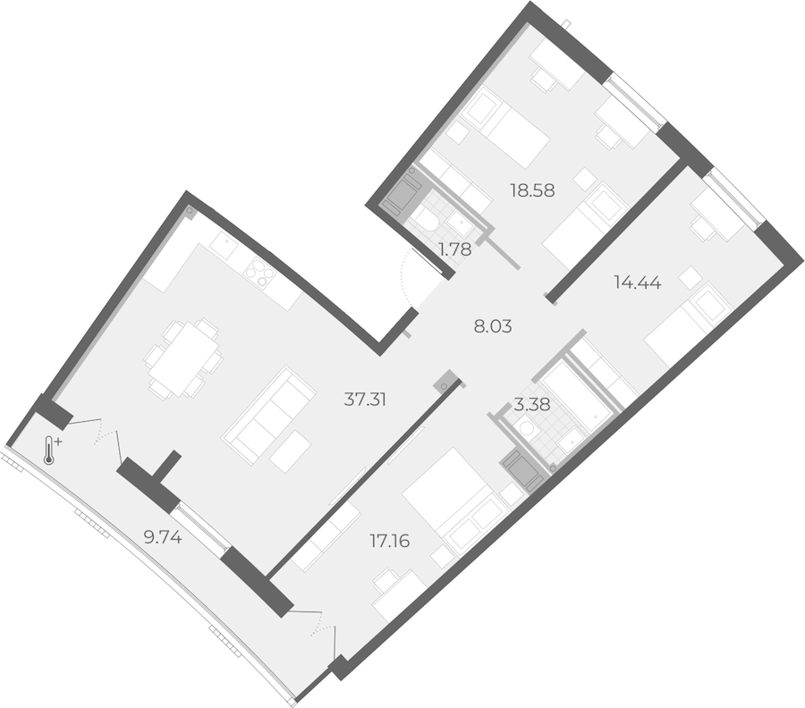 Трёхкомнатная квартира на 16-ом этаже 105,55 кв.м