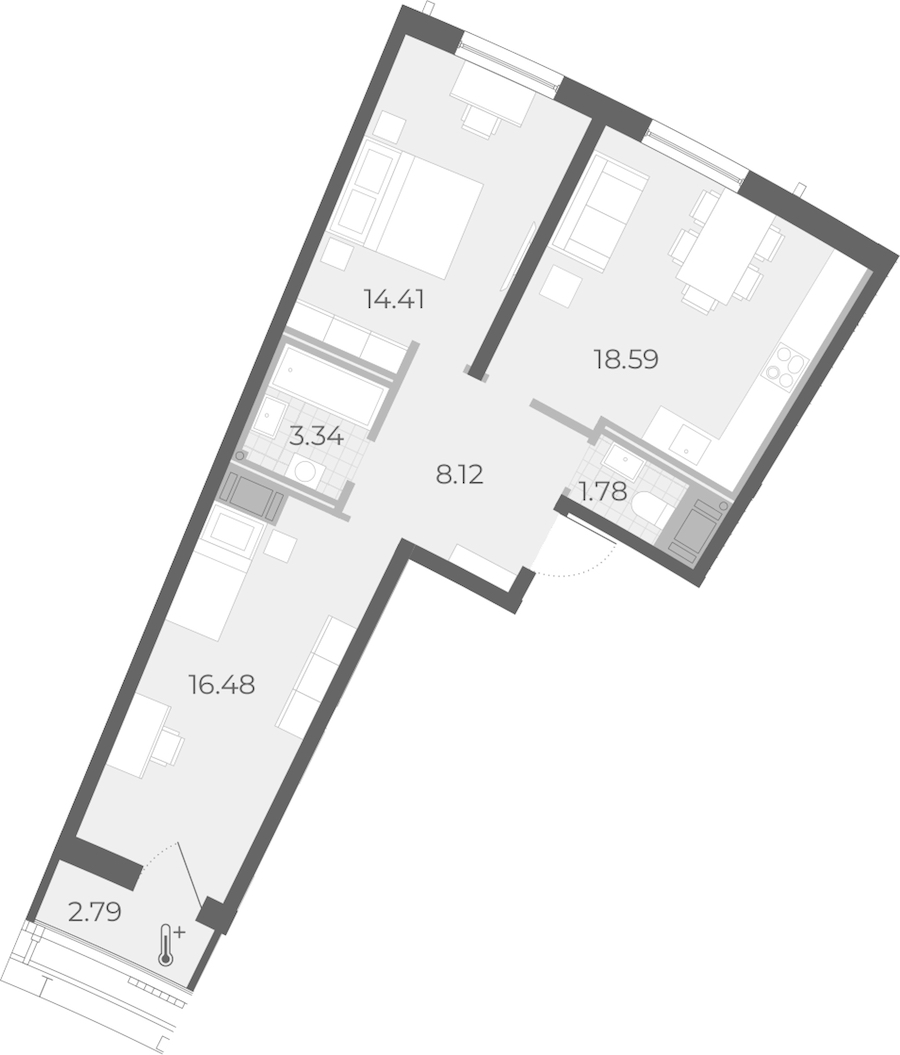 - Площадь кухни18,59 м2