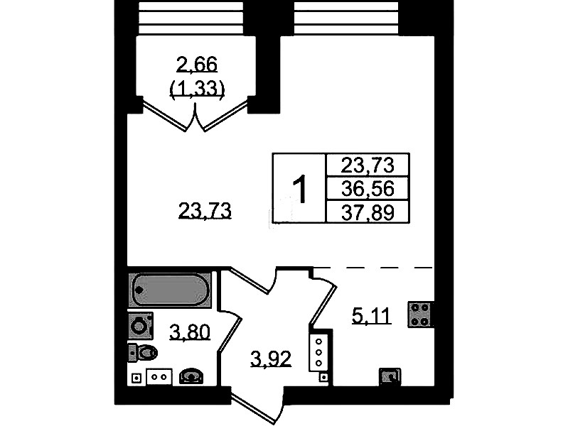 - Площадь38,5 м2