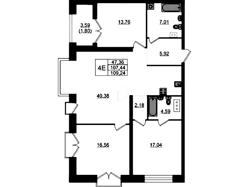 Трёхкомнатная квартира на 11-ом этаже 109,24 кв.м