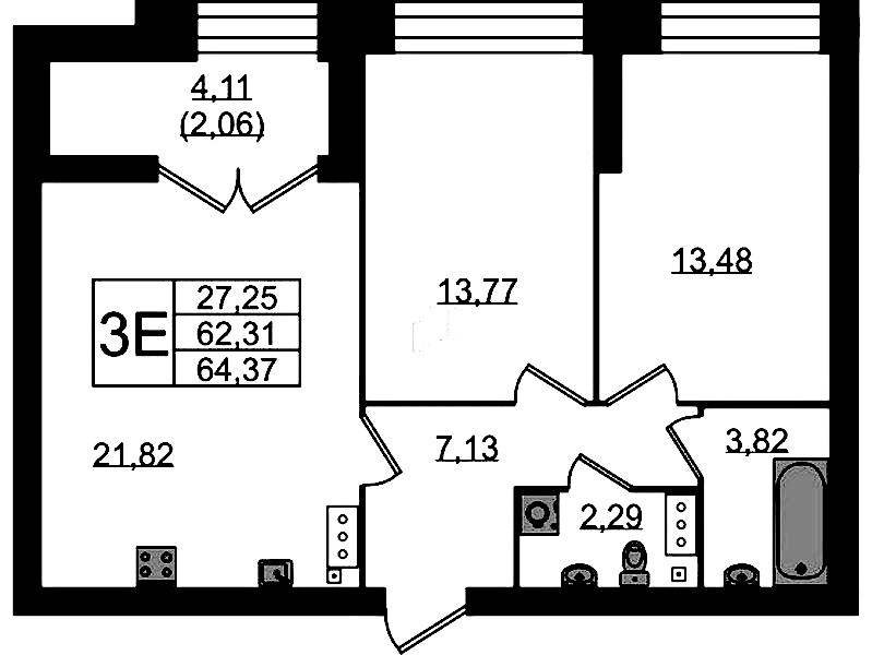 • Площадь64,37 м2