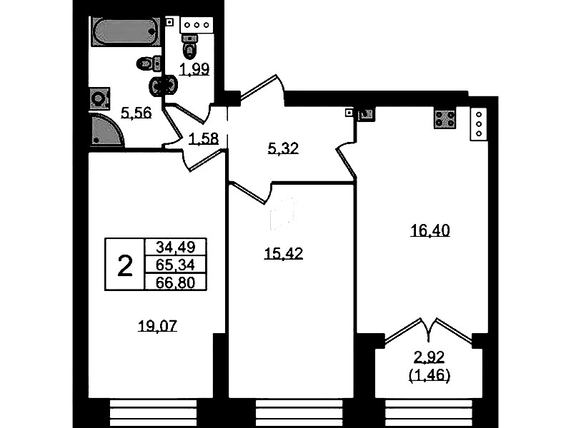 Двухкомнатная квартира на 10-ом этаже 70,1 кв.м