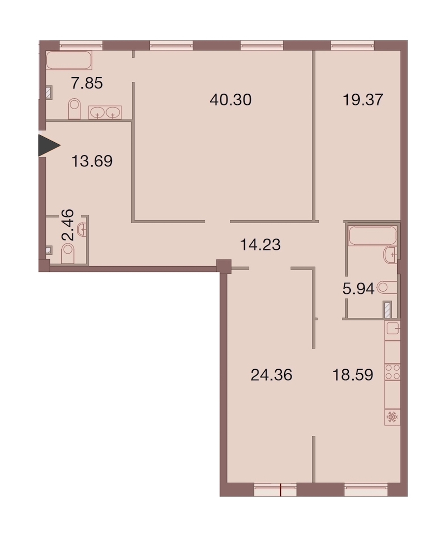 - Площадь кухни18,59 м2