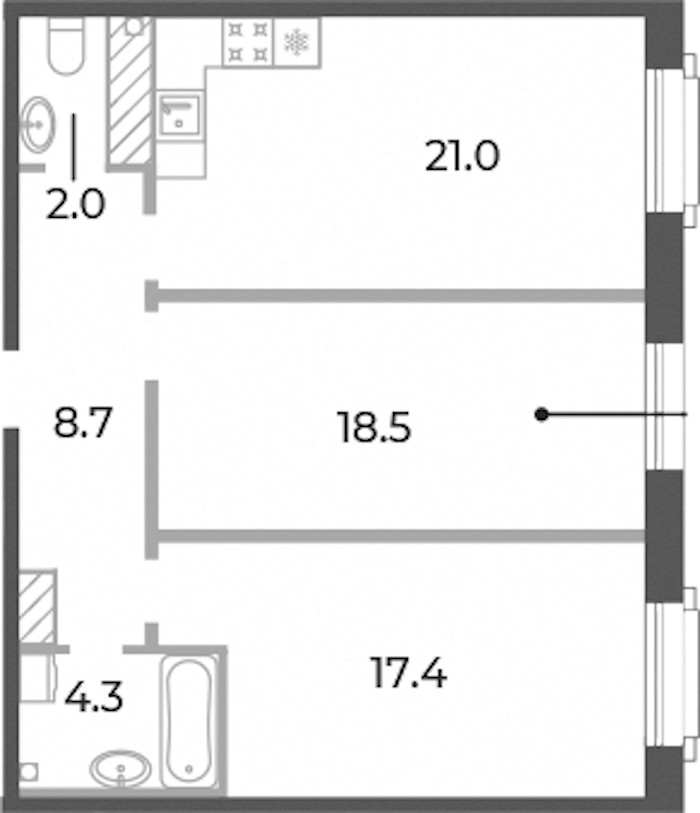 - Площадь кухни21 м2