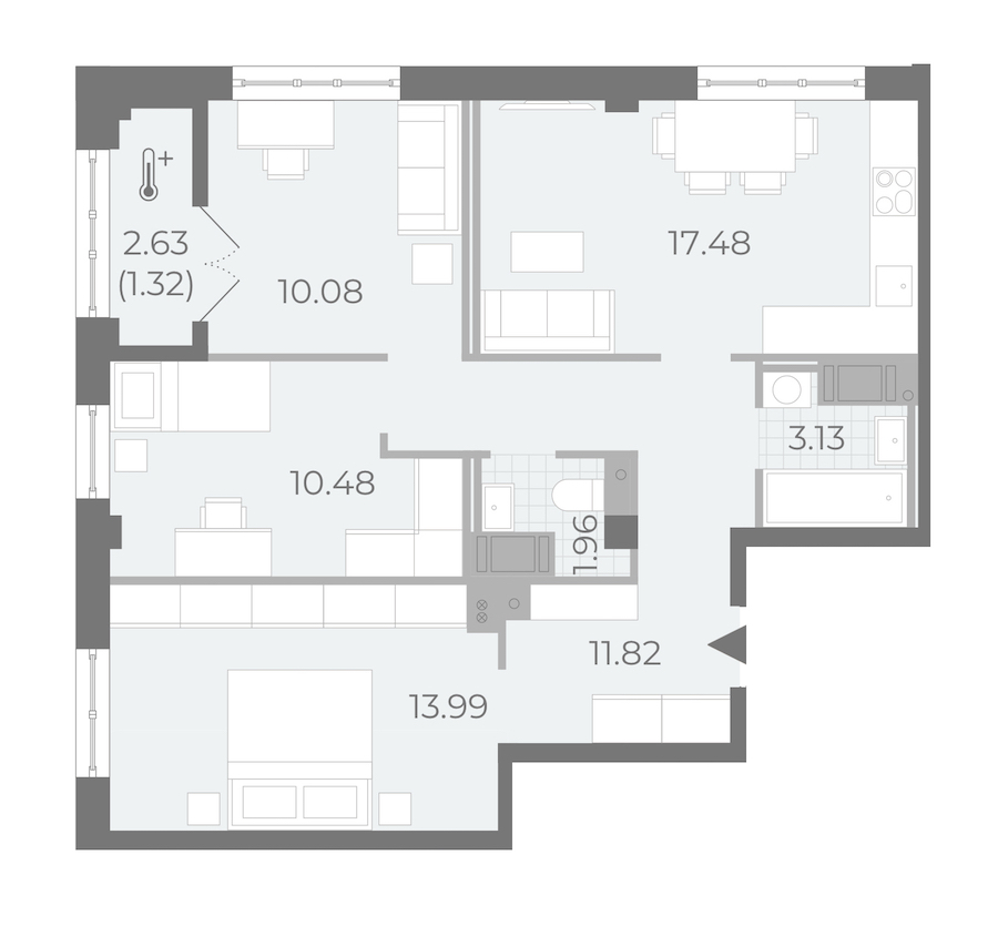 - Площадь кухни17,48 м2