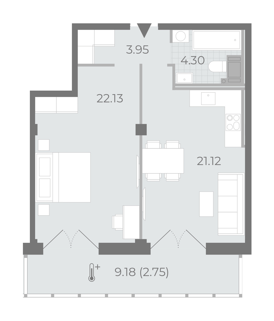 Однокомнатная квартира на 7-ом этаже 54,7 кв.м
