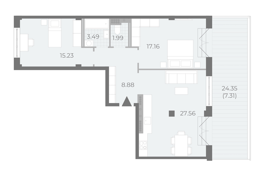 Двухкомнатная квартира на 7-ом этаже 81,3 кв.м