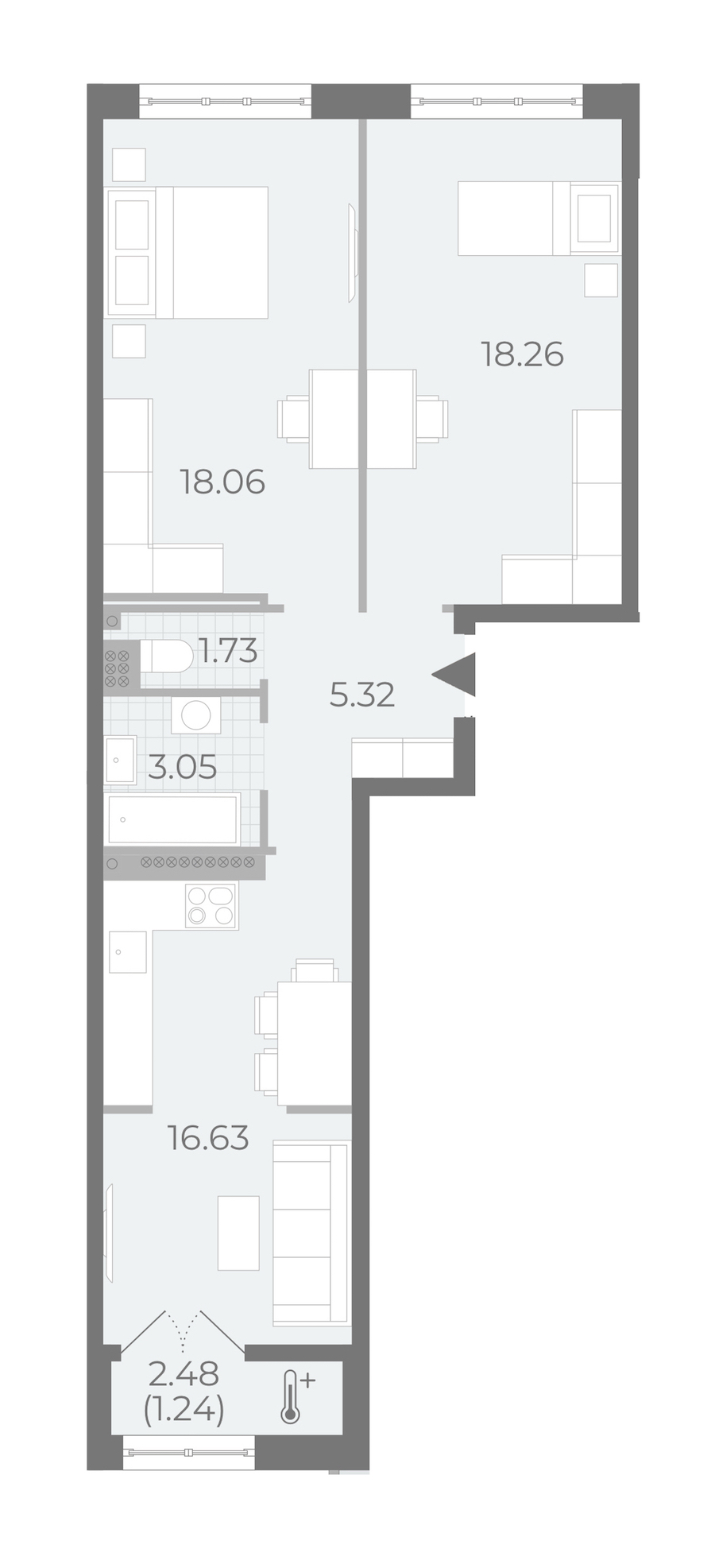 Двухкомнатная квартира на 8-ом этаже 64,9 кв.м