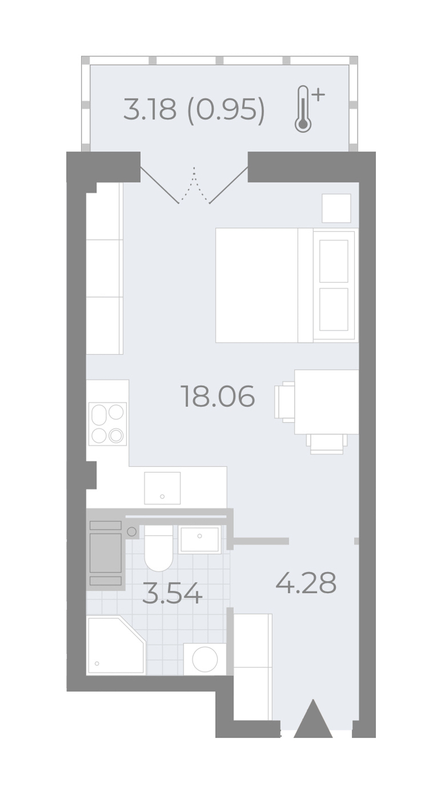Квартира-студия на 8-ом этаже 27,3 кв.м