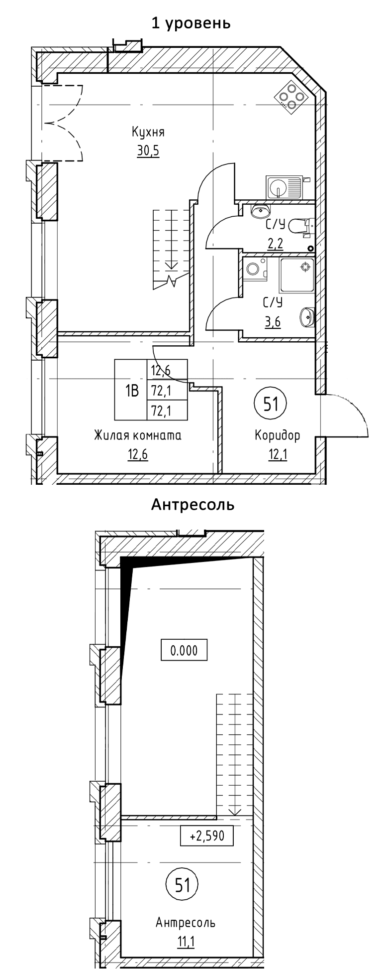 - Площадь72,5 м2