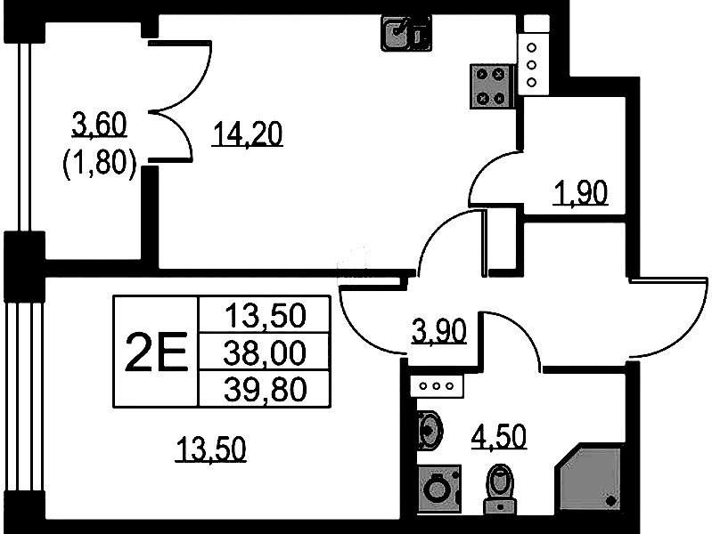 • Площадь39,8 м2
