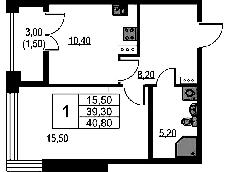 - Площадь40,8 м2