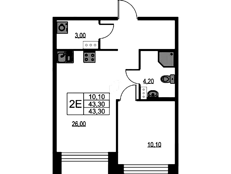 Однокомнатная квартира на 4-ом этаже 43,3 кв.м
