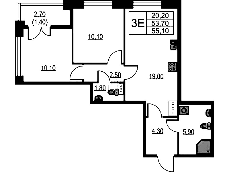 • Площадь55,1 м2