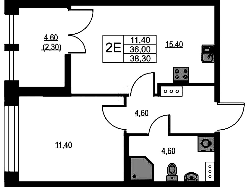 • Площадь38,3 м2