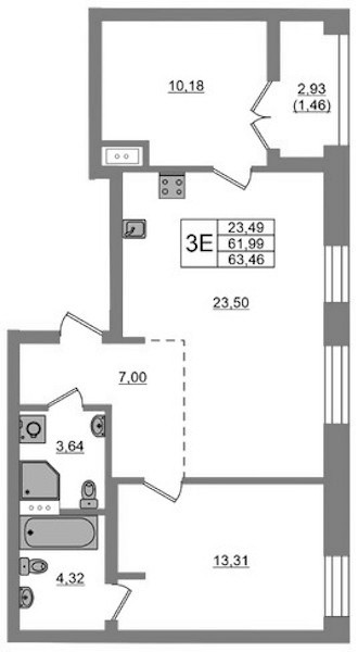 - Площадь63,46 м2