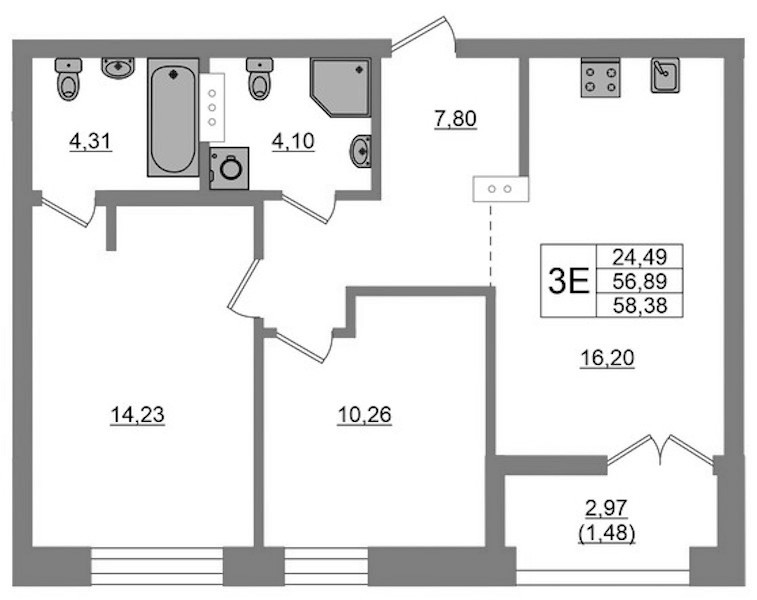 • Площадь58,38 м2