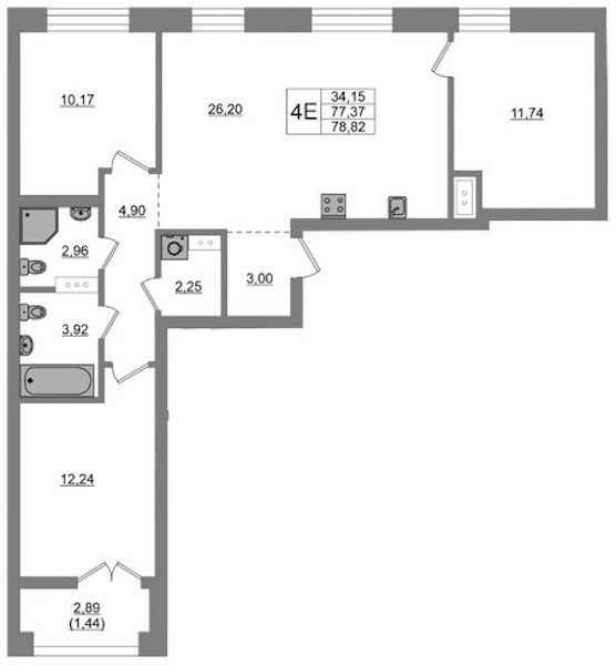 Трёхкомнатная квартира на 7-ом этаже 78,82 кв.м