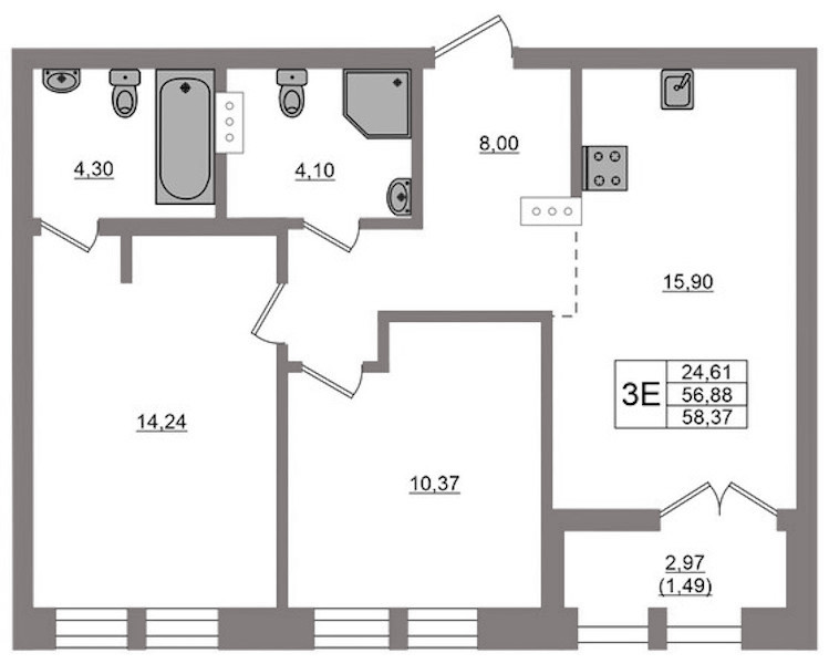 • Площадь58,37 м2